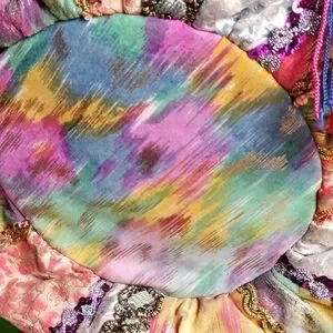 Multi color with shingles & different flaps and gold leather strap snap closure ..in good for age