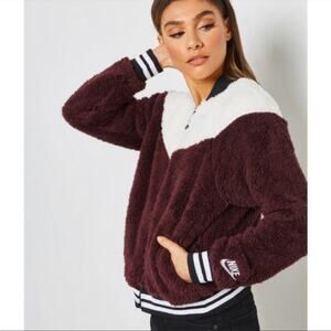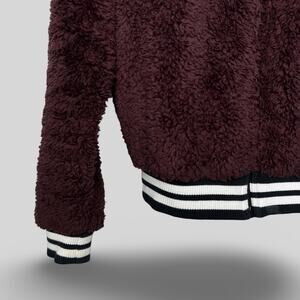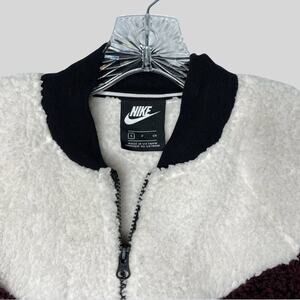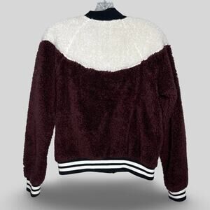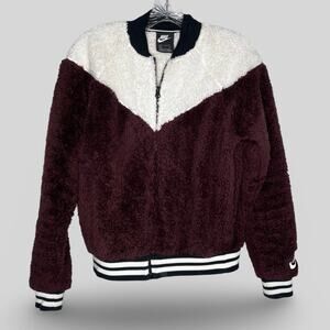 Nike sherpa varsity bomber jacket in maroon, black and white. Super soft and fuzzy!