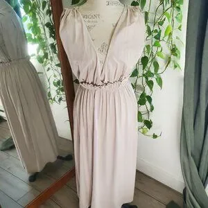 ZARA | Sleeveless Ruffle Waistline Beige Boho Maxi Dress (S)