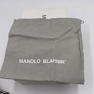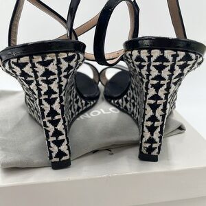 Manolo Blahnik Gorgeous Ribera Black Patent Leather Woven Wedge Anklet Sandles