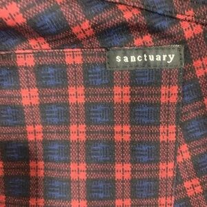 New! Sanctuary by anthropologie red black and blue checkered leggings size small. Made out of polyester rayon and spandex. Fake pockets. 13 inches from the waist and 35 inches in length. Brand new with tags! 1 1/2 inches of elastic around the waist band.
