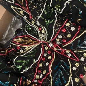 Absolutely stunning vintage beaded dress with puff sleeves and intricate design. Colors and design are beautiful! This is a size Small (closer to 2, not 0). In new condition 🎁