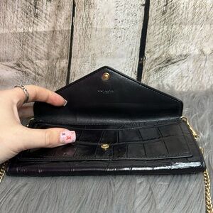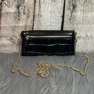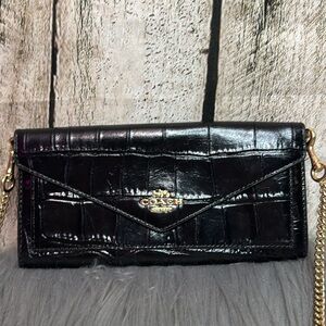 Black & gold croc embossed Coach crossbody/clutch/wallet. No holes or stains. In good condition. Look carefully at the photos below before purchasing. See photos below for details.