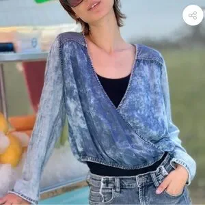 Wash Lab Denim Cross-Front Shirt Women’s Sz S
