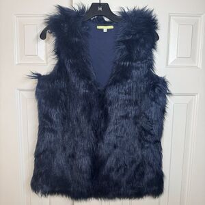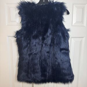 GIANNI BINI WOMEN'S Blue Faux Fur Shell Vest Women’s Small Hook Eye Closure