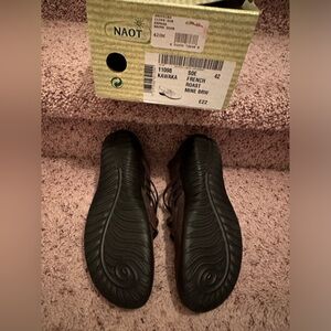 New in box. I just never wore them and wear scrubs most of the time to work now. Great supportive shoes for plantar fasciitis