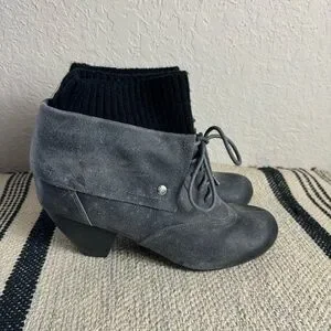 Dr. Scholls Womens Ali Elephant Ankle Boots Gray Suede Leather
