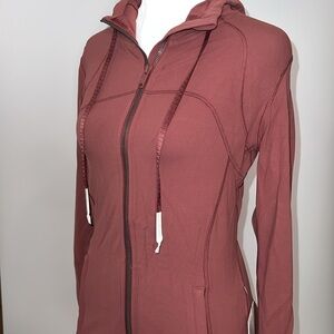 This is my absolute favorite piece by LULULEMON! The HOODED DEFINE JACKET IN NULU FABRIC IN COLOR SMRD (Smoky Red). Its buttery soft fabric is weightless and the color is gorgeous. Size 8