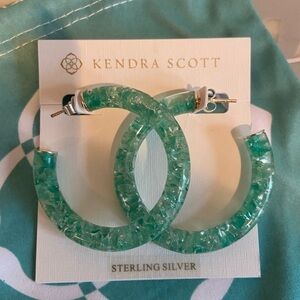 NWT Kendra Scott Sterling Silver & Green Onyx Hoop Earrings with Drawstring Bag