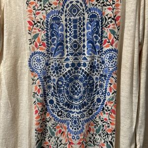 1X Lucky Brand long sleeve hamsa shirt. Light weight. Round hem.