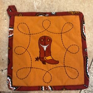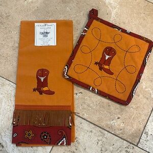 Kay Dee Austin cowboy boot dish towel and potholder.