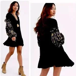 Free People Mix It Up Beaded Embroidered High-Low Peasant Tunic