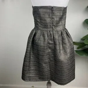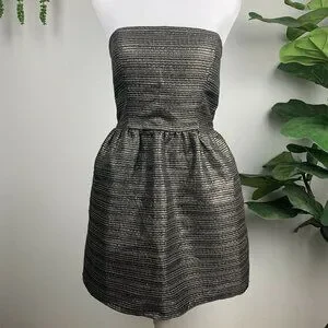 Rush M Black Gold Metallic Tube Top Strapless Fit Flare Babydoll Party Dress