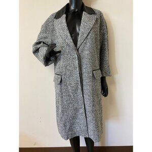Dkny Women Gray Heathered Faux Leather Trim Long Sleeve Trench Coat Size L NWOT