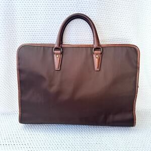 From Porter Tokyo. Yoshida & Company. 70th Anniversary Limited Glow Brown satin top handle briefcase with multiple zipper and snap button compartments. Preowned in good condition with no stains or tears.