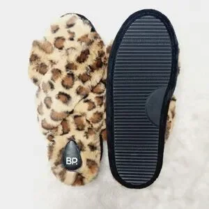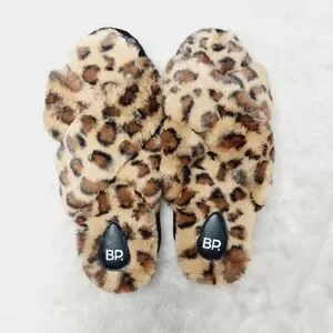 NEW BP. Bundle Of Two Sophie Brown Leopard Faux Fur Criss Cross Slippers S131