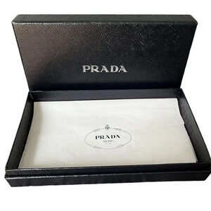 Prada Unisex Black Leather Card Wallet & Box Like New