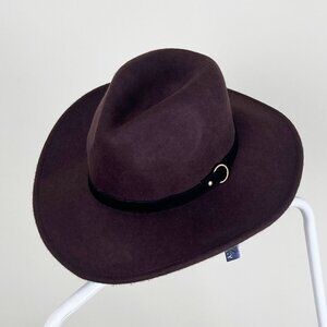 Stunning New 100% Wool Western Cowboy Outback Wide Brimmed Felt Hat Boho Bohemian Fedora Brand: Artisan NY Features: Medium to wide 3" brim, pinched top, center dent crown, Colors: Chocolate brow with antique brass color round buckle Composition: 100% Wool with a faux leather trim Size: One size fits most with an adjustable inner band. Reinforced rolled edge Condition: Brand new with original tags Originally: $119.00 Style Tags: Vintage Inspired, Retro, 40s, 40’s, 50s, 50’s, 60s, 60’s, 70s, 70’s, Hippie, Bohemian, Boho, Rustic, California, Free Spirited, Gypsy, Natural, Cowboy, Cowgirl, Southern, South Western, Rustic, Rodeo, Equestrian, Countrycore, Farmcore, Field, Cabincore, Cowboycore, Westerncore, Wild West, Ranch, Riding, Stampede, Whimsical, Coastal, Beach, Resort, Resortwear, Vacation, Travel, Safari, Grandpa, Grandmother, Grandma, Light, Lightweight, Scandinavian, Nordic, Preppy, Dark or Light Academia, European, Quiet Luxury, Understated Luxe, Garconne, Normcore, Minimalist, Minimalism, Felted, Sophisticated, Classic, ​​Capsule Collection Wardrobe, Country Club, Sporty, Traditional, University, College, Ivy League, Plazacore, Student, Professor, Old Money, Prep, School, Spring, Summer, Fall, Winter, Office, Work, Business Casual, Workwear, Feminine, Smart, Professional, Thanksgiving, Christmas, Effortless, Timeless