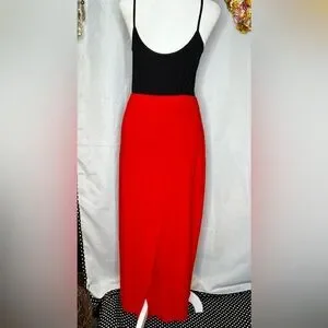 This lovely Gretchen Scott skirt is bright red in color and quite slimming. It fits like a glove and accentuates your curves. A few details about this skirt are as
