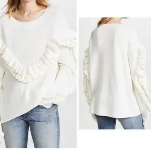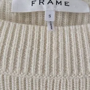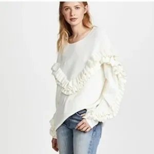 Frame Ruffle Yoke Ribbed Wool Blend Off White Oversized Knit Sweater Size Small