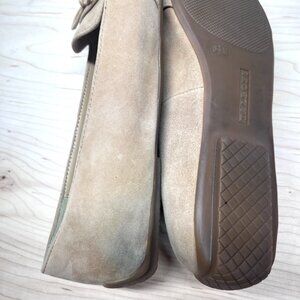 Talbots Tan Suede Leather Pointed Toe Loafer Flats with Tasseled Bows Size 6.5M