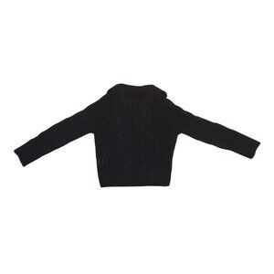 Cozy knit cables add toasty texture to this chic knit sweater styled with a notched collar.