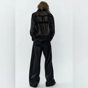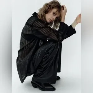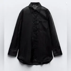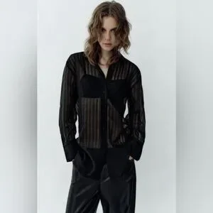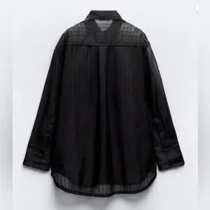 Zara OVERSIZED STRIPED ORGANZA SHIRT. Black. Size XS-S. New with Tags.
