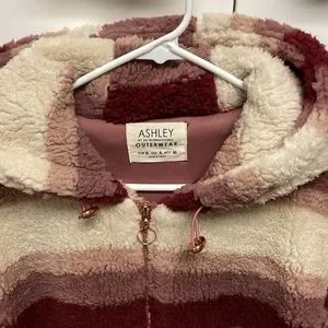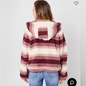 The Buckle’s Ashley Fuzzy Sherpa Hooded Jacket Mauve Stripe Size XL