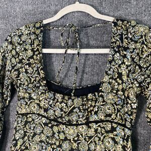 Free People Boheme Dress 4 Small Black Green Long Sleeve Floral Mini A-Line