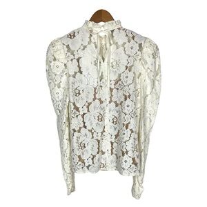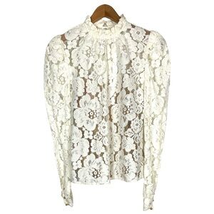 WAYF Erika Puff-Sleeve Lace Top Blouse Fairy Victorian Romantic Quiet Luxury NWT