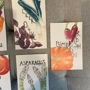 Originally purchased on Etsy, these beautifully illustrated postcards are perfect for sending thoughtful messages or framing as a unique kitchen collection. The vibrant vegetable designs add a touch of charm to any space!