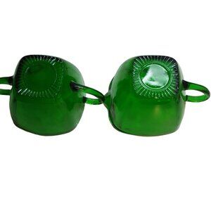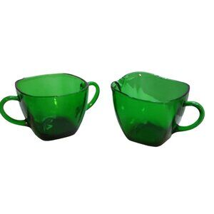 Vintage Anchor Hocking Forest Green Charm Square Creamer & Sugar Bowl