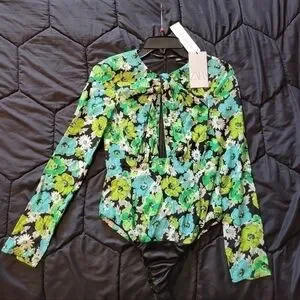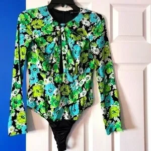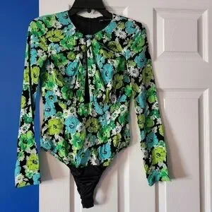 ZARA Draped Floral Bodysuit
