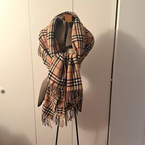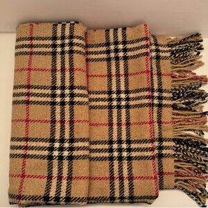 Burberry classic check 100% cashmere large shawl 6 ft x 29" with fringe on both ends made in England. Absolute stunning shawl can also be work as a long scarf or wrapped around the shoulders this piece works with everything is a true classic !