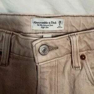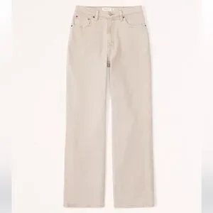 Abercrombie High Rise 90s Relaxed Curve Love, Oat, Size 6 Long Jeans