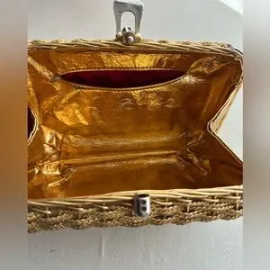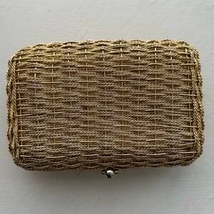 Vintage koret woven clutch. Gold tone ***see photos for wear missing gems by clasp. Some wear on corners. Really cool piece similar styles sell for hundreds. I have loved it and it’s now time to pass it along.