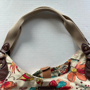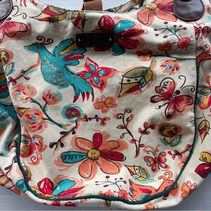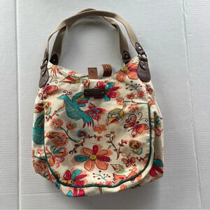 Lucky Brand Large Floral Bird Canvas Hobo Bag Tote Purse Bright Colorful VGUC