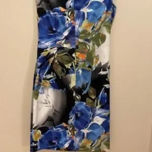 Cache Dress - Blue Floral - Size 6. Blue floral, sleeveless dress. Zipper in the back. Never hemmed - never altered. Gently worn.