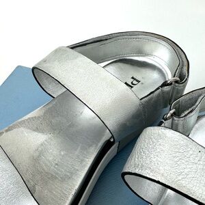 PRADA SPORTY METALLIC SILVER OPEN TOE SANDALS LUXURY PLATFORM SHOE 39, US 8.5