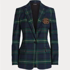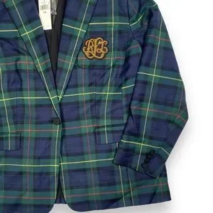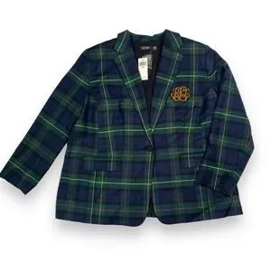 NWT Lauren Ralph Lauren Bullion Plaid Wool-Blend Twill Blazer Size 20W Woman