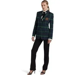 Crafted from stretch-infused wool-blend twill in a plaid pattern. This structured blazer embodies sophisticated Lauren Ralph Lauren style with a signature bullion patch at the chest.