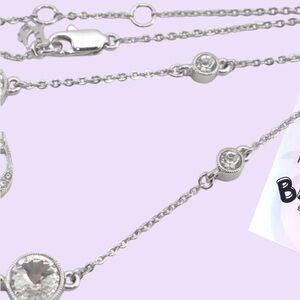 Dior: Crystal Logo Bar Rhinestone Silver Necklace