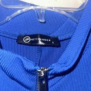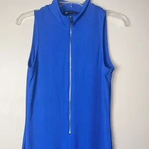 Pretty Garden Blue Ribbed Sleeveless Mock Neck Jumpsuit Women's Large