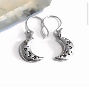 ****Donated***HANDMADE Crescent Moon Dangling Silver Earrings
