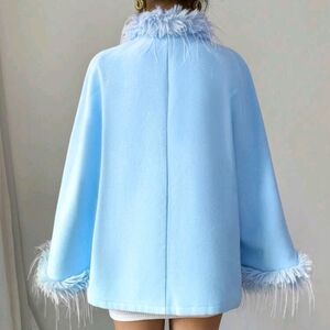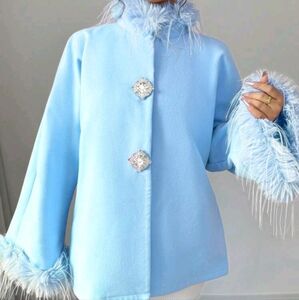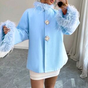 Women's Wool Collar Flare Sleeve Diamond Button Tweed Coat