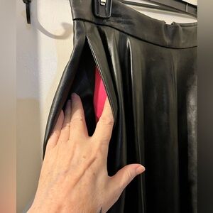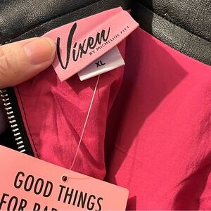 Vixen by Micheline Pitt- size XL- black heavy faux leather-Bad Girl- circle skirt. Back zip, pink lining, pockets. NWT.