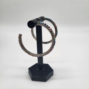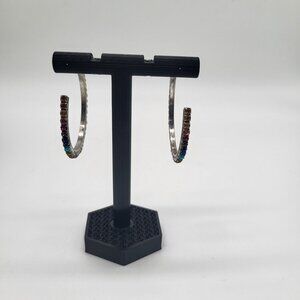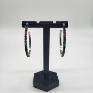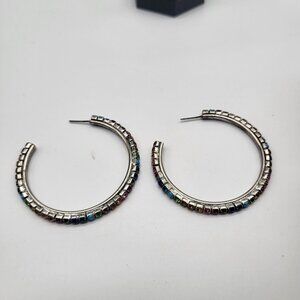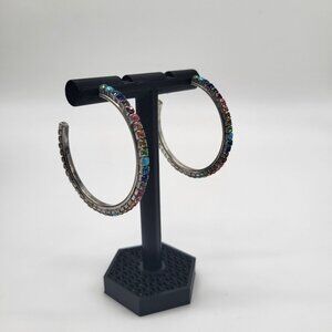 Dannijo Vega Hoop Earrings Rainbow Multicolor Silver Tone