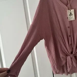 NWT Waffle Knit Tie Top in Wine