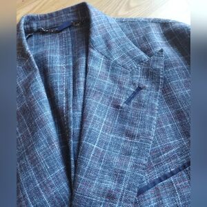 Angelo Galasso Plaid Wool, Silk & Linen Blazer, Size 50 US, 60 IT, XXL NWOT. Elevate your look with this stunning Angelo Galasso men's Blazer. Featuring a luxurious wool, silk and linen blend, This plaid single-breasted blazer, with sleeves lined in silk, features square lapels, three slit pockets adorned with a darker blue trim, and a two-button closure. It showcases thier signature hexagonal buttons on the front and sleeves, with additional dark blue trim details. The blazer also boasts a double vent on the back for extra comfort. It measures Chest size 24 in from pit to pit, Shoulders are 20 in, and jacket length is 33 in. In 2014, GQ UK defined Angelo as one of the most elegant men and the 'Godfather of Italian Style', while British magazine called him 'one of the most important innovators of this generation'. These prizes are due to the quality of high standard menswear, which the brand offers. Its collections 'showcase not only the distinctive characteristics of an entirely handmade offering, but the kind of detailing usually reserved only for bespoke pieces'. This jacket may be from the 2013 collection, it is similar in style to the photos taken from his fall collection. I haven't found any other information on it, but it has never been worn as the original stitching is still on the cuffs as shown in photos. A gorgeous jacket that initially retailed for $3000-$4,000.
