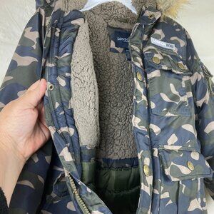 London Fog Boys sz 5 / 6 Camo Hooded Removable Faux Fur Winter Jacket
